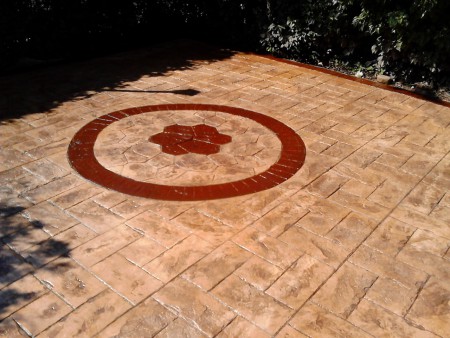 El hormigón impreso en realidad es una solera cuya superficie viene pigmentada y tiene un “bajorrelieve”, grabado mientras está fresco mediante moldes de neopreno que simulan las piezas y texturas más variadas. La estampación puede imitar adoquines, piedra, baldosas, pizarras… Al ser antideslizante, también da excelente resultado en la zona de la piscina. La clave de este pavimento es la capa superficial endurecedora y coloreada, que viene en polvo ya preparada de fábrica.