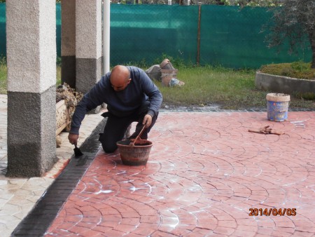 El hormigón impreso en realidad es una solera cuya superficie viene pigmentada y tiene un “bajorrelieve”, grabado mientras está fresco mediante moldes de neopreno que simulan las piezas y texturas más variadas. La estampación puede imitar adoquines, piedra, baldosas, pizarras… Al ser antideslizante, también da excelente resultado en la zona de la piscina. La clave de este pavimento es la capa superficial endurecedora y coloreada, que viene en polvo ya preparada de fábrica.
