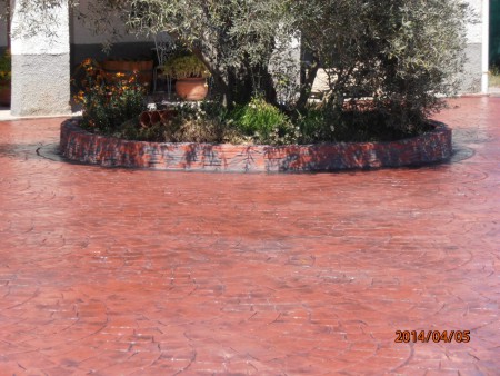 El hormigón impreso en realidad es una solera cuya superficie viene pigmentada y tiene un “bajorrelieve”, grabado mientras está fresco mediante moldes de neopreno que simulan las piezas y texturas más variadas. La estampación puede imitar adoquines, piedra, baldosas, pizarras… Al ser antideslizante, también da excelente resultado en la zona de la piscina. La clave de este pavimento es la capa superficial endurecedora y coloreada, que viene en polvo ya preparada de fábrica.